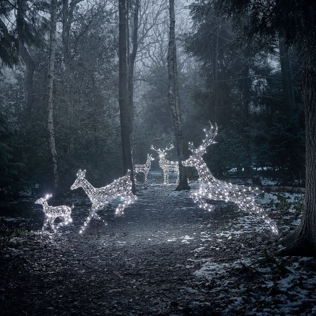 Com o Conjunto Natalino de 5 Renas Iluminadas com LED em Duas Cores, você cria um cenário natalino único e sofisticado. Seja no jardim, sala ou vitrine, ele garante um toque mágico para encantar sua família, convidados e clientes neste Natal.