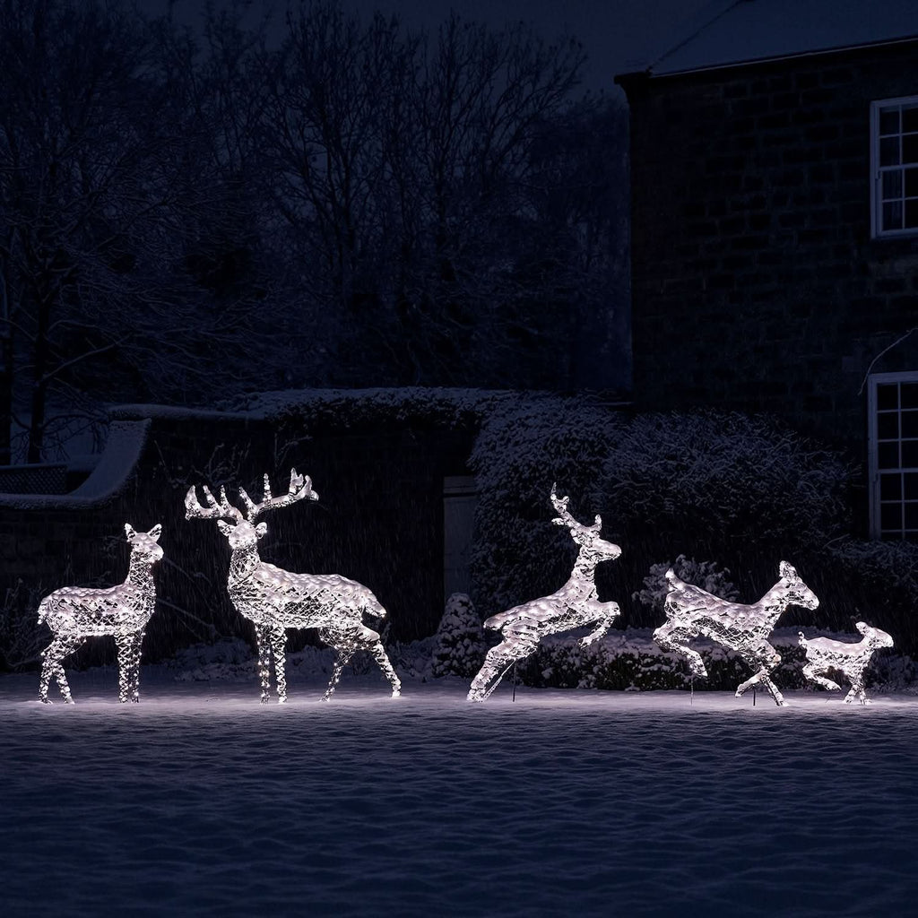 Conjunto Natalino de 5 Renas Iluminadas com LED em Duas Cores